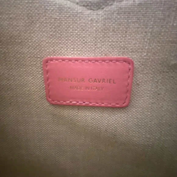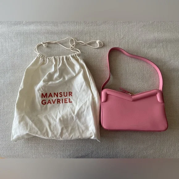 Mansur Gavriel pink leather shoulder bag. Almost perfect condition, no notable flaws other than some very mild creasing, as pictured. Comes with dust bag. Really love this one, just don’t use it enough.Product description:M-frame leather shoulder bag from MANSUR GAVRIEL featuring flamingo pink, calf leather, gold-tone logo lettering, zigzag edge, single top handle, two-way zip fastening, main compartment and internal logo patch. Dimensions:Depth2.4 inHandle9.1 inHeight5.1 inWidth9.4 in